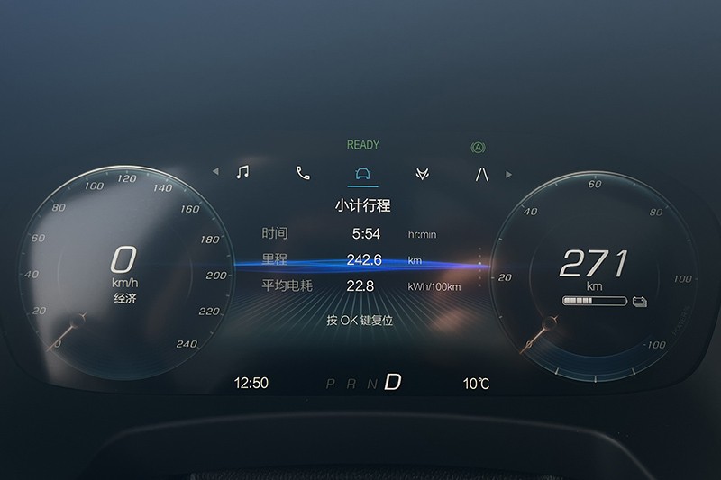 假期間,EV君駕駛阿爾法T在市內進行了一次長途郊游,以接近滿電狀態(tài)出發(fā)(表顯續(xù)航570km),兩天往返總距離242.6km,此時表顯剩余續(xù)航為271km。按這個掉電比率計算,這臺綜合續(xù)航600km的阿爾法T,在3-10攝氏度的天氣下可以做到約480km的實際續(xù)航,還算不錯。