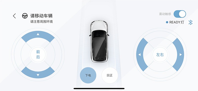 另一個處于測試階段的功能是“遙控駕駛”。顧名思義,你可以在手機上像玩玩具車一樣,對你的阿爾法T進行前進、后退、左右轉向等操作,車內車外均可。