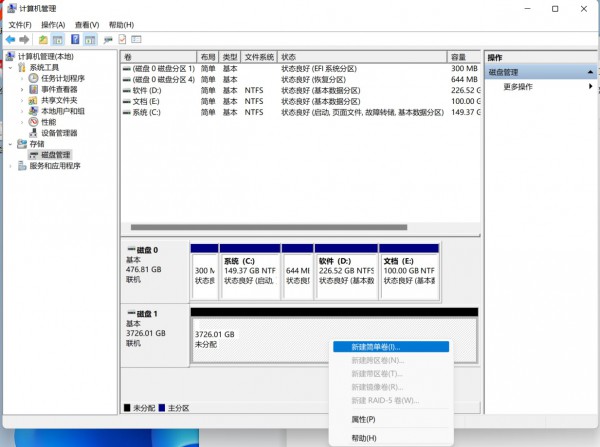 在電腦的計(jì)算機(jī)管理界面的磁盤管理,進(jìn)行初始化剛剛新加的硬盤。