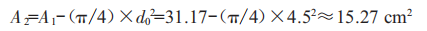 這里選取內(nèi)徑為D=63mm、活塞桿直徑為d=45mm的液壓缸,代入無(wú)桿腔的有效作用面積公式,得到: