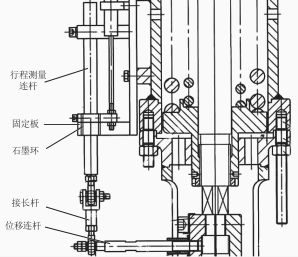(1)為避免固定板與行程測量連桿的金屬與金屬接觸,將固定板孔擴(kuò)大后,加入一個具有潤滑效果的厚度為20mm的剛性石墨圓環(huán)。