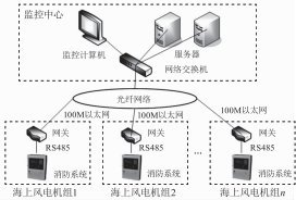 海上風(fēng)電機(jī)組由于遠(yuǎn)離陸地,相比陸上風(fēng)電機(jī)組更加不易維護(hù)管理。海上風(fēng)機(jī)在無人值守狀態(tài)下運(yùn)行,當(dāng)發(fā)生火災(zāi)時(shí),由于海況和天氣情況的影響,很可能無法派人前往滅火,從而給風(fēng)機(jī)帶來毀滅性的破壞。因此,海上風(fēng)電機(jī)組需要安裝自動(dòng)消防系統(tǒng),并接入消防物聯(lián)網(wǎng)系統(tǒng),對消防系統(tǒng)運(yùn)行狀態(tài)實(shí)現(xiàn)遠(yuǎn)程監(jiān)控,及時(shí)發(fā)現(xiàn)各類消防安全隱患,以便及時(shí)派人處理,避免火災(zāi)事故的發(fā)生。如果一旦發(fā)生火災(zāi),也可以遠(yuǎn)程控制風(fēng)電機(jī)組內(nèi)的消防系統(tǒng)進(jìn)行滅火,從而保障風(fēng)電機(jī)組的消防安全。本文設(shè)計(jì)和實(shí)現(xiàn)了一套海上風(fēng)電機(jī)組消防物聯(lián)網(wǎng)系統(tǒng),用于江蘇海上風(fēng)力發(fā)電有限公司濱海北H1/H2#項(xiàng)目風(fēng)力發(fā)電機(jī)組的遠(yuǎn)程消防監(jiān)控。