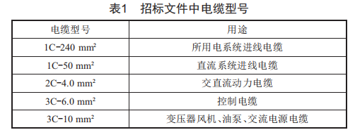 NGCP給出的招標文件中,對600V電纜給出了明確的型號,具體如表1所示[5]。