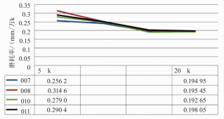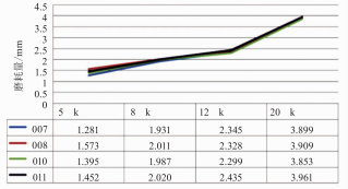 上述這些數(shù)值都是可接受的,而且隨著運行里程數(shù)的遞增,萬千米平均磨耗值還將有所下降。根據(jù)現(xiàn)場數(shù)據(jù),可以判定車輪踏面未發(fā)生磨耗過快等異常情況。