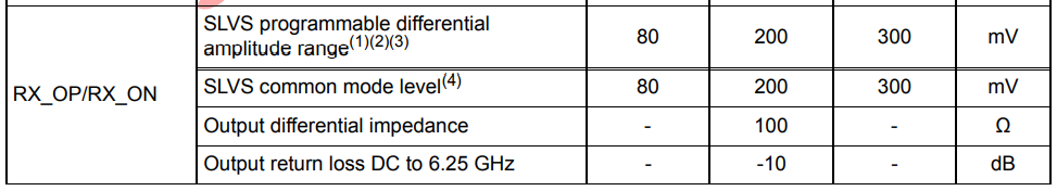 SLVS Receiver性能參數(shù)