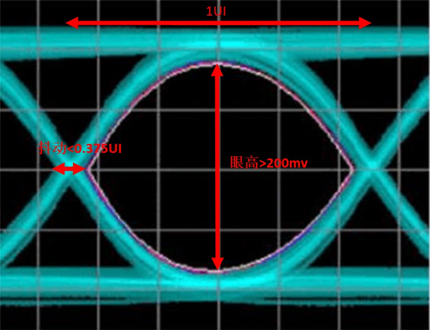 再結(jié)合SLVS檢測門限最小差分200mV,可以得到如下的SLVS接收端眼圖要求: