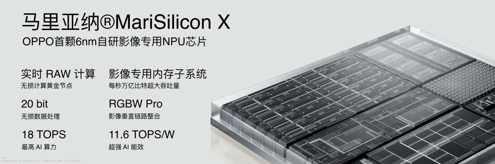 通過自研馬里亞納MariSilicon X高至18TOPS算力和高達11.6TOPS/w能效比、20bitUltraHDR動態(tài)范圍能力、20bitRAW域處理、RGBWPro雙通路處理的性能,F(xiàn)indX5 Pro首次支持四大芯片級影像體驗: