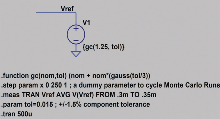 圖1.電壓源的LTspice原理圖(使用蒙特卡羅分布)