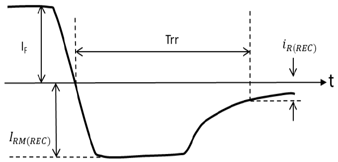 8.反向恢復(fù)時(shí)間(Trr)。該參數(shù)表征的是二極管由導(dǎo)通狀態(tài)切換到關(guān)斷狀態(tài)的時(shí)間大小,由于PN結(jié)中的載流子狀態(tài)的切換需要時(shí)間,因此二極管由正向電壓切換到反向電壓時(shí),二極管不能立即關(guān)斷,而是需要一定的時(shí)間,該時(shí)間越小越好。