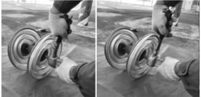 在10kV線路的建設(shè)和維護過程中,懸式絕緣子間的連接或與金具的連接都是通過一個卡簧來限位防止元件間的脫落,但現(xiàn)在沒有特定的工器具實現(xiàn)卡簧的有效拆裝,目前的拆裝操作可謂"五花八門",作業(yè)人員大多采取鋼絲鉗扯拔或扳手拷打等方法(圖1),不但費時,還會對碗頭掛環(huán)和卡簧造成損壞,如用力不當還會造成瓷瓶破裂或卡簧丟失。特別是在高處作業(yè),嚴重時使用拷打方法會造成絕緣子爆裂,不但影響施工時的工作效率,而且卡簧受拷打扯拔后有變形的可能,這就給設(shè)備帶來了一定的安全隱患。為使絕緣子鎖緊銷可以輕松順利拔出,本項目研制了一種易操作、安全性高的新型絕緣子卡簧拆裝工具,取得了良好的應用效果。
