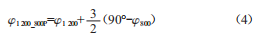 對于情形Ⅲ和Ⅳ,起點到峰值經(jīng)過的相位為909-φ800,則1200Hz信號經(jīng)過的相位應(yīng)為3/2(909-φ800),于是: