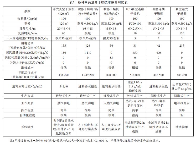 1各種中藥浸膏干燥技術(shù)的綜合對比