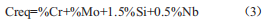 鉻和鎳當(dāng)量的計(jì)算公式如下: