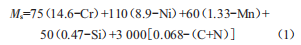 如果4計(jì)算結(jié)果為負(fù)數(shù),則表示當(dāng)發(fā)生嚴(yán)重應(yīng)變時(shí),奧氏體向馬氏體轉(zhuǎn)變的趨勢很大。300系列不銹鋼中的鎳含量超過10n5%時(shí),4通常為正值,材料是穩(wěn)定的[2]。