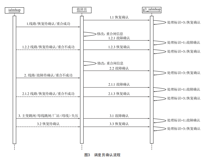 當(dāng)電網(wǎng)發(fā)生故障時,通常分為瞬時故障和永久故障。以發(fā)生最頻繁的線路跳閘為例,當(dāng)發(fā)生瞬時故障,線路跳閘并重合成功時,會直接推送"恢復(fù)待確認"給調(diào)度員,調(diào)度員確認重合閘信息,結(jié)果無誤即可發(fā)布恢復(fù)確認短信:如果發(fā)現(xiàn)重合閘信息有誤,可進行手動填報,轉(zhuǎn)為永久故障進行處理。兩種故障情況具體設(shè)計流程如圖3所示。