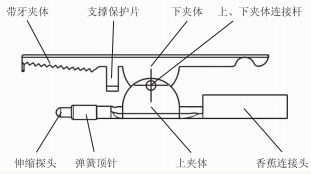 本文提供了一種無須拆裝原端子接線,采用外部并聯(lián)的方式即可快速接入所需試驗導(dǎo)線的工具,不僅能減少接入測試導(dǎo)線所花的時間,還能減少反復(fù)拆裝導(dǎo)線給接線端子帶來的損傷,避免了因拆除導(dǎo)線時誤接所造成的安全隱患。其主要結(jié)構(gòu)部件包括彈簧頂針、上夾體、下夾體、壓簧、固定桿以及絕緣外殼,如圖7所示。其中彈簧頂針頭部為可伸縮探頭,伸縮探頭與壓簧連接并安裝在管內(nèi),管口處卷邊將伸縮探頭保持在管內(nèi),靠彈簧提供接觸力使探頭與對接導(dǎo)體之間建立電氣連接:上夾體頭部為外接香蕉頭,標(biāo)準(zhǔn)4mm內(nèi)徑,用于外部電氣連接,中部為夾具安裝體,尾部為內(nèi)徑3.1mm的管狀體,用于與彈簧頂針焊接連為一體,在中部還設(shè)有支撐U形片,用于保護頂針探頭不會被對側(cè)夾體壓到:下夾體包括三角鋸形牙、安裝U形片、尾部按壓柄,通過壓簧、固定桿與上夾體連接組成一個夾具。使用時只需將帶伸縮彈簧頂針的上夾體對準(zhǔn)螺絲孔下壓并夾上邊沿即可,在內(nèi)部壓簧的作用力下伸縮探頭將與螺絲的頭部形成良好的電氣連接,經(jīng)試驗驗證可滿足高壓二次測試試驗絕大部分場合要求,為開關(guān)柜及相關(guān)高壓二次回路測試提供了便利,避免了拆裝原接線造成的風(fēng)險,節(jié)省了測試人員工作時間,減少了工作失誤,值得在高壓二次測試領(lǐng)域大力推廣使用。