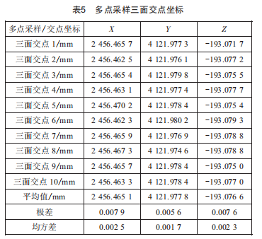 從表中數(shù)據(jù)可以看出,3種擬合方法中,采用三面交點法擬合測量機坐標系坐標原點的不確定度最小。