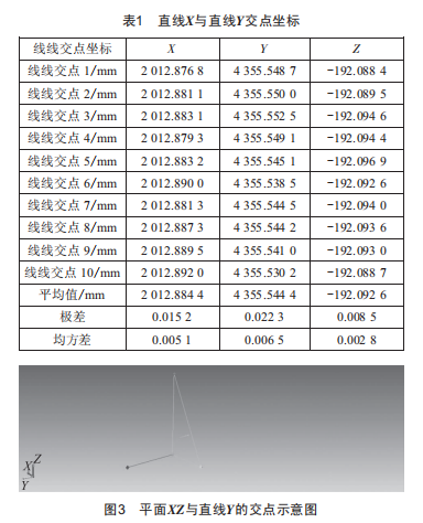 (1)基于激光跟蹤儀擬合測量機坐標原點,線線交點、線面交點、三面交點3種擬合方法中,三面交點法擬合測量機坐標系坐標原點的不確定度最小。