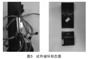 為了驗(yàn)證復(fù)合材料層合板T型連接結(jié)構(gòu)漸進(jìn)損傷分析的可行性與準(zhǔn)確度,基于伺服拉伸試驗(yàn)機(jī)對(duì)T型連接結(jié)構(gòu)進(jìn)行試驗(yàn)驗(yàn)證。圖5所示為T型接頭板試件在試驗(yàn)后的破壞形態(tài),試件斷裂位置出現(xiàn)在上面板靠T型接頭邊緣的位置,破壞位置、破壞形式與仿真結(jié)果相符,破壞時(shí)的載荷為23.603kN,仿真分析精度為-2.94%,滿足工程使用要求。