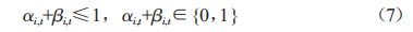 為了進一步表示蓄電池的狀態(tài)轉(zhuǎn)換過程,引入0-1變量Fi,4以記錄蓄電池的充放電過程切換,即當且僅當aEQ \* jc3 \* hps10 \o\al(\s\up 3(1=1、aEQ \* jc3 \* hps10 \o\al(\s\up 3(=0或者aEQ \* jc3 \* hps10 \o\al(\s\up 3(1=0、aEQ \* jc3 \* hps10 \o\al(\s\up 3(=1時,蓄電池才發(fā)生充放電過程的切換,則Fi,4滿足以下約束條件: