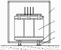 1-鋁合金保護(hù)外殼;2一干式變壓器;3一槽鋼基礎(chǔ);
