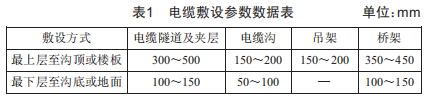 在敷設過程中,技術人員結合具體的電纜敷設參數(shù),如表1所示,并且從盤的上端引出電纜,禁止電纜在地面上摩擦,控制電纜的彎曲飯金,避免電纜被鎧裝壓扁。技術人員要在廠家的指導下進行電纜終端頭的施工,施工完成后測試電纜的耐壓水平,確保其符合規(guī)范之后,進行回填,采用"分層夯實"技術,在土壤下方300mm的位置夯實,控制回填土高于地面100mm。