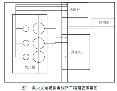 箱變安裝是風力發(fā)電場輸電線路工程施工中的重要環(huán)節(jié),在設備運到現(xiàn)場后,技術人員要結合箱變示意圖(圖1)核對產品信息,確保其容量、電壓等級等數(shù)據(jù)符合設計需求。技術人員要結合"拆卸件一覽表"進行核對,保證變壓器的主機及附件完好,要利用16t的調車進行安裝,在基礎施工養(yǎng)護完成后,結合中心線位置,將其吊運到基礎上,將其與基礎的預埋件進行焊接,提出兩根扁鐵,與接地設置連接。