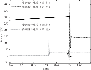 圖4IGBT分別關斷額定值以下(第1組)及接近額定值3倍(第2組)的電流波形