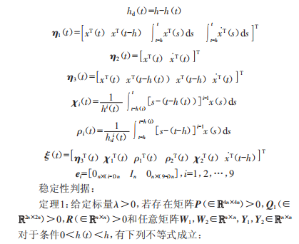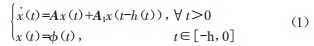 式中,x(l)∈Rn是系統(tǒng)狀態(tài)向量:初始條件6(l)為連續(xù)可微的向量函數(shù):A,A1∈Rn是恒定系統(tǒng)的矩陣:h(l)是時(shí)變時(shí)滯且滿足0<h(l)<h。