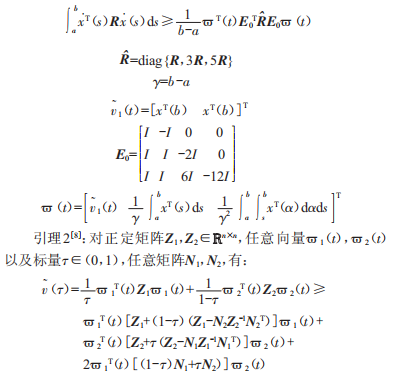 引理1[7]:對任意正定矩陣T∈Rn×n,常數(shù)a、b,向量函數(shù)x在區(qū)間[a,c]二Rn,有: