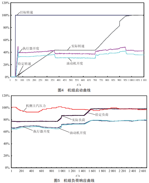 2017年9月對(duì)該電廠30Mw汽輪機(jī)的電液調(diào)節(jié)系統(tǒng)改造成功,圖4是其機(jī)組啟動(dòng)曲線,圖5是其機(jī)組自動(dòng)控制下的負(fù)荷響應(yīng)曲線。