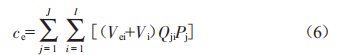 式中,J為發(fā)電技術(shù)類數(shù):I為污染種類:vei為第i種污染產(chǎn)生的環(huán)境價(jià)值:vi為第i類污染的單位污染罰款:0ji為采用第j類發(fā)電技術(shù)生產(chǎn)單位電量時(shí)的第i類污染物排放量:Pj為第j類發(fā)電技術(shù)的年發(fā)電量。