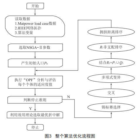 本文將利用NSGA-I優(yōu)化算法以及Matvower加載潮流計算的方法來優(yōu)化DG規(guī)劃選址與定容問題,通過設定多目標函數(shù)、限制條件,選取Pareto解集的最優(yōu)解,通過引入懲罰因子以及權重策略的選取來獲得最優(yōu)DG規(guī)劃配置,如圖1所示。