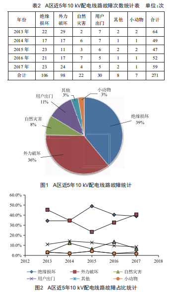綜上可知,目前絕緣損壞與外力破壞是引起A區(qū)配電線路故障的主要原因。