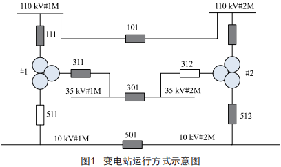 某110kV變電站有兩臺三繞組變電器,變電站主接線圖如圖1所示。