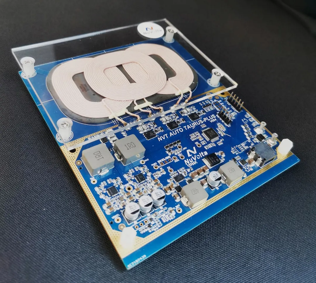 圖為伏達(dá)基于NU8040Q集成功率級芯片,推出的車載無線充電參考設(shè)計——NVTREF8040Q,支持50W無線充電功率,且效率高達(dá)78%。