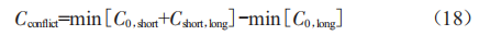 漸進(jìn)規(guī)劃模型是在多階段規(guī)劃模型的基礎(chǔ)上考慮了短期規(guī)劃與長短期規(guī)劃沖突程度的協(xié)調(diào),并且在決策中主觀賦予不同的權(quán)重。首先需量化長期規(guī)劃對(duì)于當(dāng)前短期規(guī)劃的影響,定義長、短期規(guī)劃最小成本沖突量為: