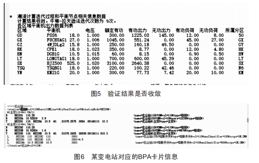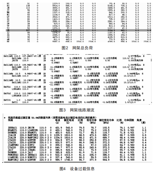 (1)設(shè)備故障前對(duì)DAT網(wǎng)架文件進(jìn)行潮流計(jì)算:計(jì)算出網(wǎng)架的總負(fù)荷、線路潮流、設(shè)備過(guò)載信息、計(jì)算結(jié)果是否收斂,分別如圖2、圖3、圖4、圖5所示。某變電站對(duì)應(yīng)的BPA卡片信息如圖6所示。