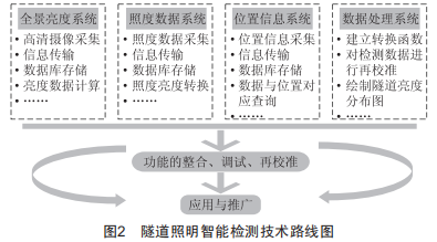 本文研究的隧道照明智能檢測系統可通過全景亮度和單點照度信息采集,進行智能優(yōu)化處理,對隧道照明狀況進行客觀準確評價,檢測速度快、數據準確、一致性高,為后續(xù)隧道運營和養(yǎng)護決策提供準確的數據支撐,適用于大批量、長隧道的照明檢測,可滿足全省乃至全國的大量檢測需求。