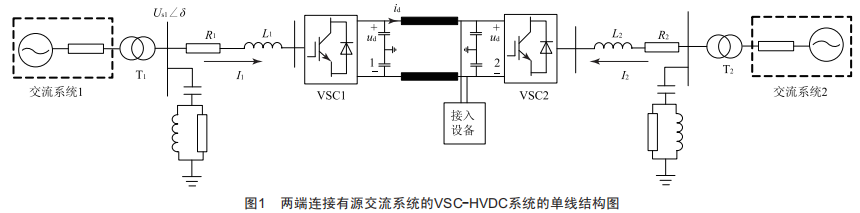 兩端連接有源交流系統(tǒng)的VsC-HVDC系統(tǒng)的單線結(jié)構(gòu)如所圖1所示。