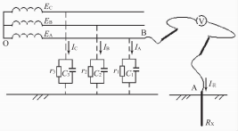 由于各相線對(duì)地的絕緣電阻在帶電的情況下是難以測(cè)量的,但可以認(rèn)為一般不會(huì)小于1MΩ,因此在其中一相線和接地裝置之間接入一阻抗較大的白熾燈,其兩端電壓應(yīng)小于3/4的相電壓。