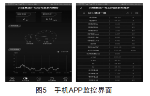 該系統(tǒng)開(kāi)發(fā)了手機(jī)APP,如圖5所示,手機(jī)移動(dòng)監(jiān)控、數(shù)據(jù)監(jiān)控、報(bào)警記錄、視頻監(jiān)控全覆蓋,一機(jī)在手,監(jiān)控不愁:電能計(jì)量在線(xiàn)監(jiān)測(cè),精度誤差<l%,應(yīng)用互聯(lián)網(wǎng)+技術(shù),電能報(bào)表(日?qǐng)?bào)、月報(bào)、年報(bào))云端監(jiān)控,隨時(shí)隨地掌握用電成本:本監(jiān)控系統(tǒng)平臺(tái)不只是供電監(jiān)控平臺(tái),還是礦井綜合監(jiān)控一體化軟件平臺(tái),可兼容排水裝動(dòng)化監(jiān)控、輸煤裝動(dòng)化監(jiān)控、壓風(fēng)機(jī)監(jiān)控、主扇監(jiān)控等。生產(chǎn)裝動(dòng)化各個(gè)環(huán)節(jié)可方便接入軟件平臺(tái),成本低、見(jiàn)效快,可實(shí)現(xiàn)礦井生產(chǎn)裝動(dòng)化全過(guò)程一體化監(jiān)控。