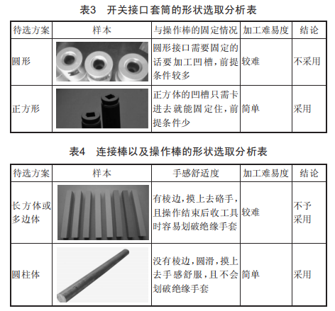根據(jù)操作手柄開關(guān)接口套筒的形狀選取分析表(表3)所示,本設(shè)計(jì)選擇了正方形。