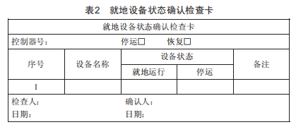 (9)對WDC系統(tǒng)升級期間所有需要運(yùn)行的設(shè)備填寫就地設(shè)備狀態(tài)確認(rèn)檢查卡(表2),并全部打到就地操作和監(jiān)視。