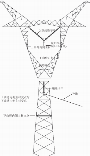 圖1單回路中相塔頭、V型絕緣子串、導(dǎo)線示意圖