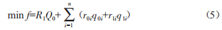 式中,/表示3種措施總的發(fā)電費用:R1表示從電網(wǎng)購買的發(fā)電費用:O0表示從電網(wǎng)購買有功率功率:n表示配單節(jié)點數(shù):r0i表示在i節(jié)點上發(fā)電功率的變動成本:g0i表示在i節(jié)點上的配電發(fā)電功率:r1i表示在i節(jié)點上主動負(fù)荷單位功率變動成本:g1i表示在i節(jié)點上的主動負(fù)荷承擔(dān)的有功功率。
