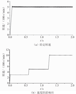 表1中鐵氧體永磁材料有兩個牌號,先后裝入樣機轉(zhuǎn)子,電機靜態(tài)轉(zhuǎn)矩曲線都出現(xiàn)了兩個極值點。按文獻[5]的啟動控制策略,對嵌入牌號Y30的樣機進行現(xiàn)場實驗。圖8為樣機速度響應(yīng)實驗波形,圖8(a)為給定轉(zhuǎn)速為500r/min的轉(zhuǎn)速響應(yīng)波形,圖8(b)為給定不同轉(zhuǎn)速(300r/min、500r/min、1000r/min)時的階躍速度響應(yīng)曲線,可以看出,電機可以平穩(wěn)啟動,電機啟動后,動態(tài)性能良好。