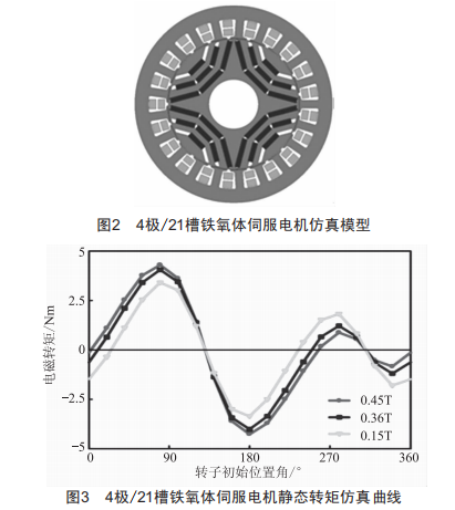 基于上述分析,鐵氧體伺服電機的設(shè)計要選擇合適的極槽配合和永磁磁鏈,盡量避免電機靜態(tài)轉(zhuǎn)矩特性出現(xiàn)多個極值點,以實現(xiàn)電機啟動時的準(zhǔn)確定位。