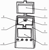 1一水壺蓋;2一水壺蓋較接塊;3一通風(fēng)道擋板;4一水壺外殼;5一溫度顯示屏;6一控制器按鈕;7一感溫器;8一進(jìn)風(fēng)口。