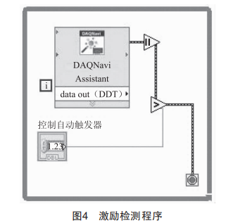 光控作動器激勵檢測程序如圖4所示,懸臂梁發(fā)生振動時,當電壓信號達到預設(shè)的自動控制出發(fā)電壓時,跳出循環(huán),執(zhí)行下一個控制程序。